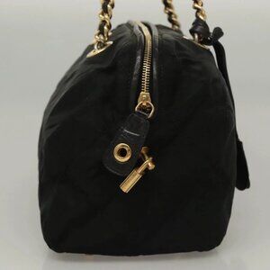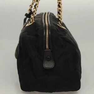 PRADA Chain Hand Bag Nylon Black Gold Auth