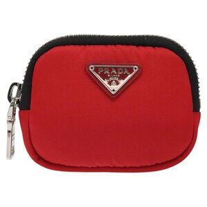 PRADA Chain Pouch Shoulder Bag Nylon Red Silver