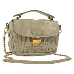 PRADA Chain Shoulder Bag Leather Beige Gold Auth