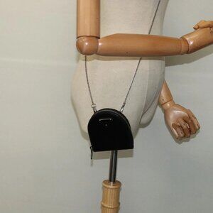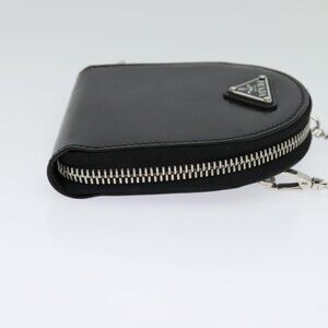 PRADA Chain Shoulder Bag Leather Black Auth