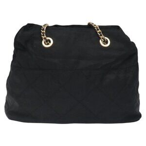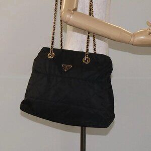 PRADA Chain Shoulder Bag Nylon Black Gold Auth