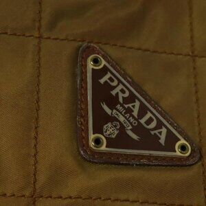 PRADA Chain Shoulder Bag Nylon Brown Silver Auth