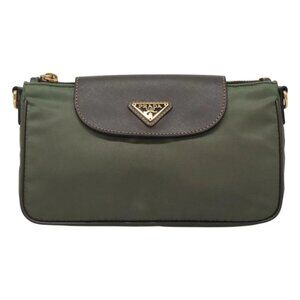 PRADA Chain Shoulder Bag Nylon Khaki Gold