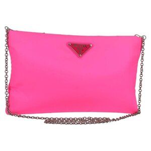 PRADA Chain Shoulder Bag Nylon Pink Silver Auth 134961M