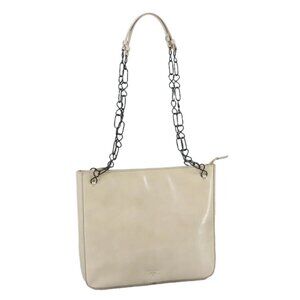 PRADA Chain Shoulder Bag Patent leather Beige Auth 109144