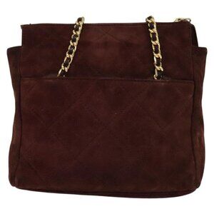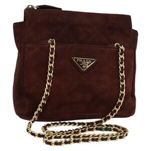 PRADA Chain Shoulder Bag Suede Brown Gold Auth