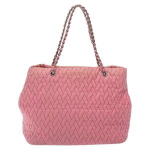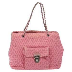 PRADA Chain Tote Bag Nylon Pink Silver Auth