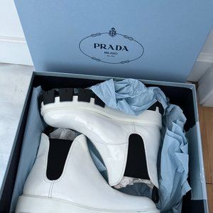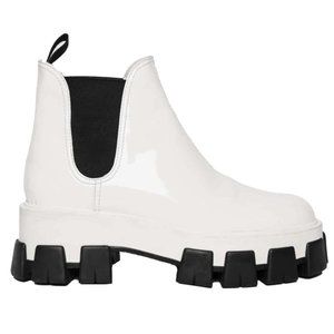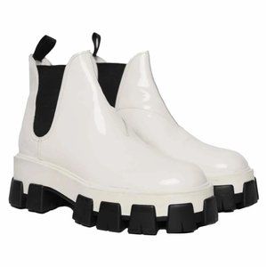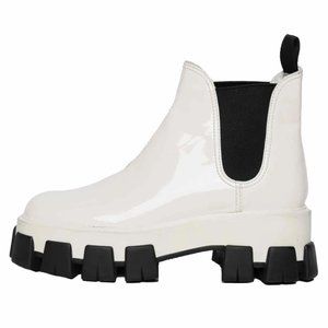 PRADA Chelsea Boots Slip-on White Patent Leather Chunky Rubber Soles Sz 35.5
