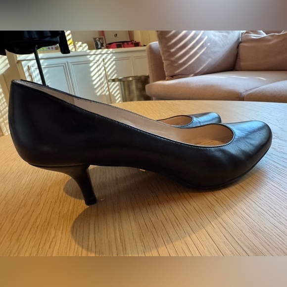 PRADA Classic Black Soft Leather Round Toe Low Kitten Heel Pumps Size 38 EUC