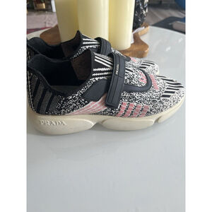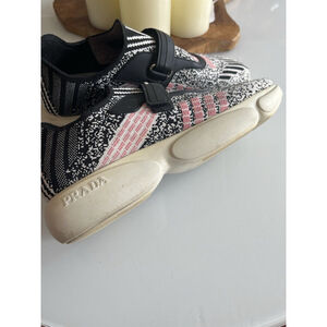 PRADA Cloudbust Women's Sneakers Size 39.5 Black White Pink Knit Authenticated