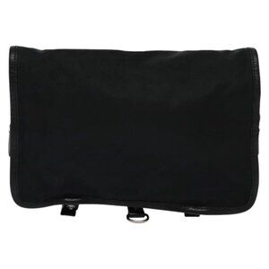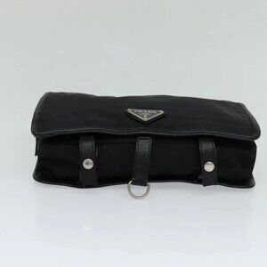 PRADA Clutch Bag Nylon Leather Black Silver Auth 113740