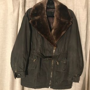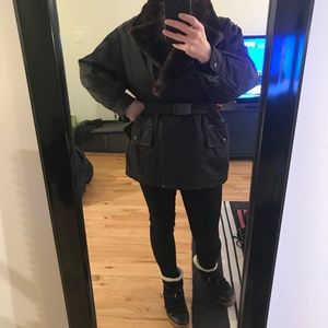 Removable fur collar/ Leather lapel and collar when removed