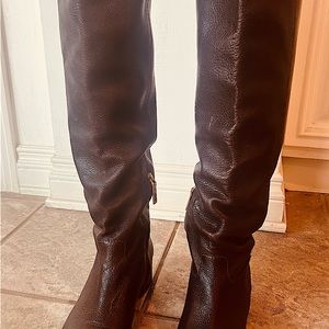 PRADA DARK BROWN BEAUTIFUL Authentic leather Tall Boots w/ Gold Buckle & Zipper