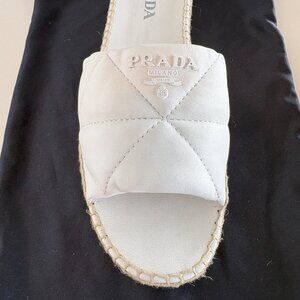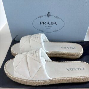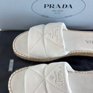 PRADA DIAMOND QUILTED LAMBSKIIN SLIDES SANDAL WITH PRADA LOGO SIZE 9