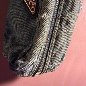 PRADA DISTRESSED DENIM POUCH