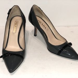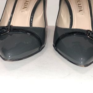 PRADA Dark Grey Patent Leather Pointed Toe Kitten Heel Pumps
