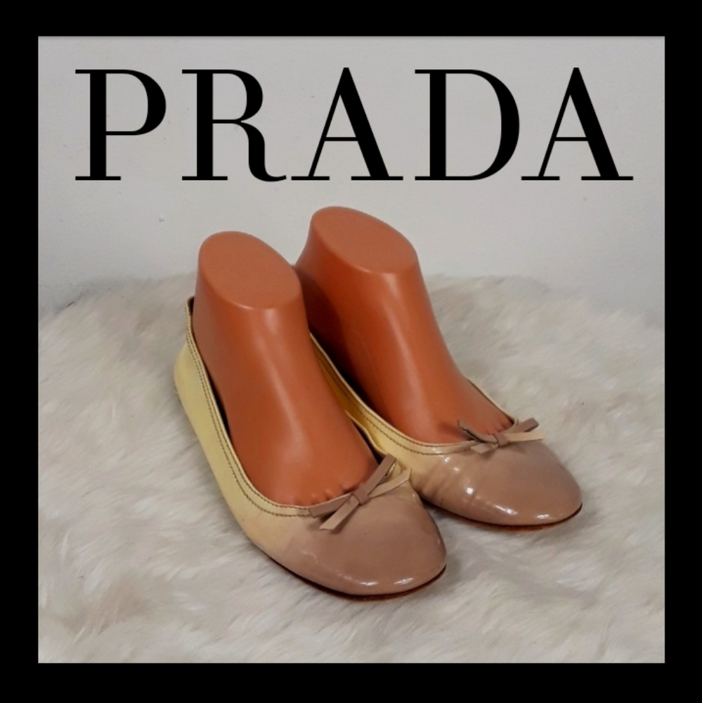 Really Nice Prada Ballerina Flats!.Very Audrey Hepburn!...Great Nuetral Colors!..These Look Extremely Comfortable!!..Some Spots On Sides!.Front and Back...Hard to See When Worn!..Beautiful Elegant Prada's!