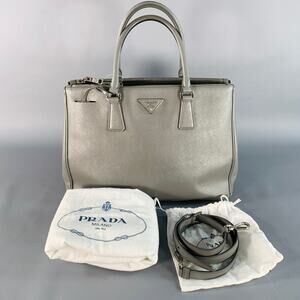 PRADA Galleria Grey Saffiano Leather Top Handles Handbag