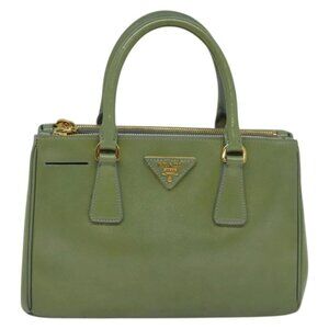 PRADA Galleria Hand Bag Safiano leather 2way Green Gold Auth