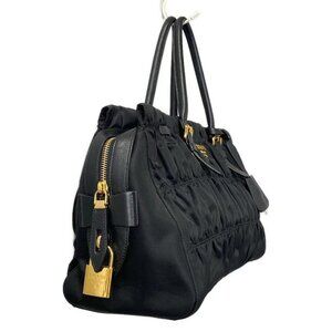 PRADA Gathered Bag Black Nylon Leather - Handbag 490-082925