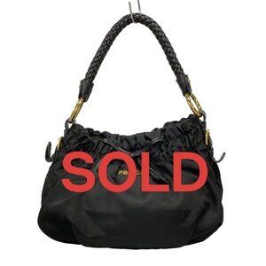 PRADA Gathered Bag - Black Nylon Leather Handbag 600-042825