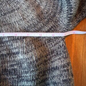 Care tag is attached but separating from sweater. Pit to pit = 14", top to bottom = 20"