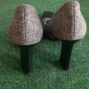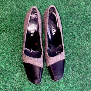 PRADA Gray Wool & Black Satin Cap Toe Pumps Heels Shoes Italy EU 36