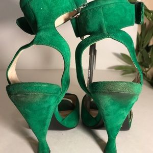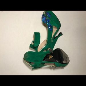 PRADA Green Suede Jeweled Platform Sandal w/Strap