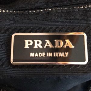 PRADA VELA SPORT NYLON AND NAPPA LEATHER HANDBAG. HANDBAG HAS ADJUSTABLE WOVEN TESSUTO NYLON STRAPS WITH TONAL