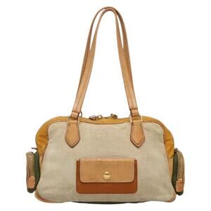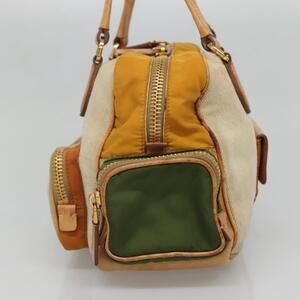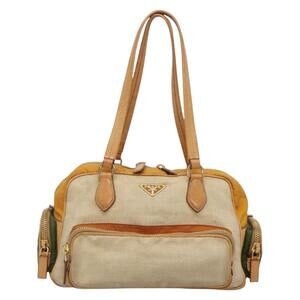 PRADA Hand Bag Canvas Beige Gold