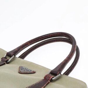 PRADA Hand Bag Canvas Khaki Silver Auth