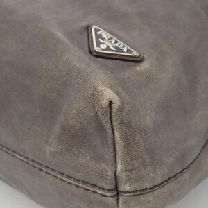 PRADA Hand Bag Leather 2way Gray Silver Auth ar13717