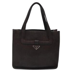 PRADA Hand Bag Leather Brown Silver
