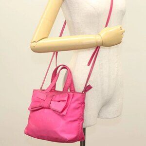 PRADA Hand Bag Nylon 2way Pink Gold Auth