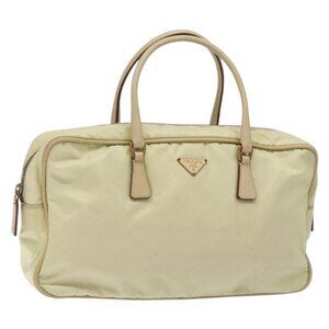 PRADA Hand Bag Nylon Beige Gold Auth 132576