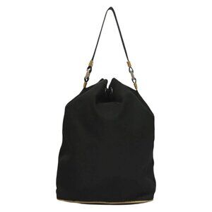 PRADA Hand Bag Nylon Black Gold Auth 132686V