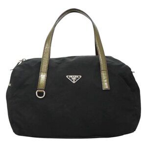 PRADA Hand Bag Nylon Black Silver Auth IN024