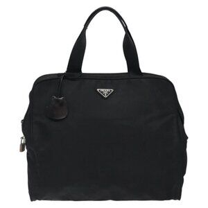 PRADA Hand Bag Nylon Black Silver Auth bs24646
