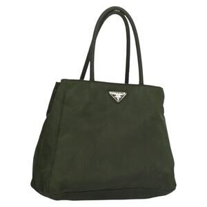 PRADA Hand Bag Nylon Khaki Silver