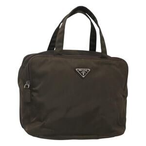 PRADA Hand Bag Nylon Khaki Silver