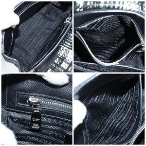 PRADA Hand Bag Nylon Leather 2way Black Silver Auth 116542AM