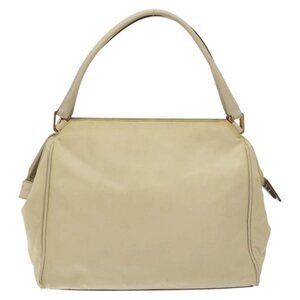 PRADA Hand Bag Nylon Leather Beige Gold Auth 129935