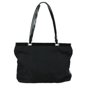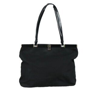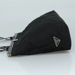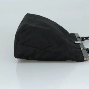 PRADA Hand Bag Nylon Leather Black Silver Auth 108371