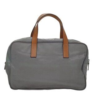PRADA Hand Bag Nylon Leather Gray Brown Silver Auth 110687