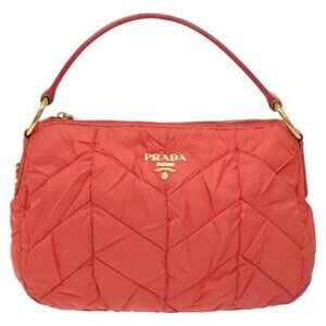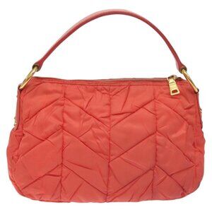 PRADA Hand Bag Nylon Leather Orange Gold Auth