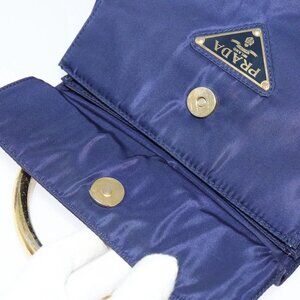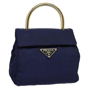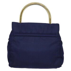 PRADA Hand Bag Nylon Metal Blue Gold Auth 137214
