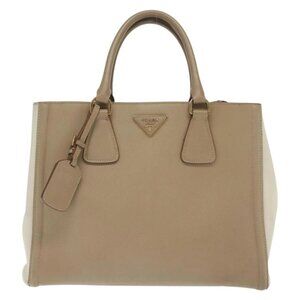 PRADA Hand Bag Safiano Leather 2way Beige Gold Auth