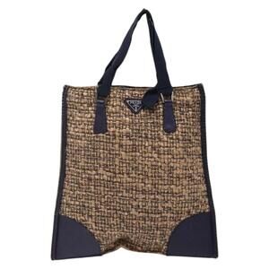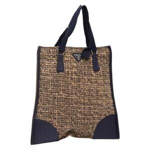 PRADA Hand Bag Tweed Beige Silver