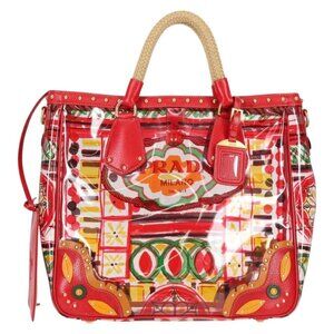 PRADA Hand Bag Vinyl 2way Red Gold Auth