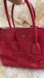 Soft leather tote travel tote. True red. Silver hardware. Comes with a crossbody strap that drops 20 inches at minimum and 23 inches max. Barely used and in excellent condition. The perfect bag for a business trip. The sides expand up to 21 inches. 12 inches high. Two large zippered pockets, one on each side plus an interior zipper pocket. Interior is genuine leather.Authenticated by the RealReal. Dust bag and luggage tag included